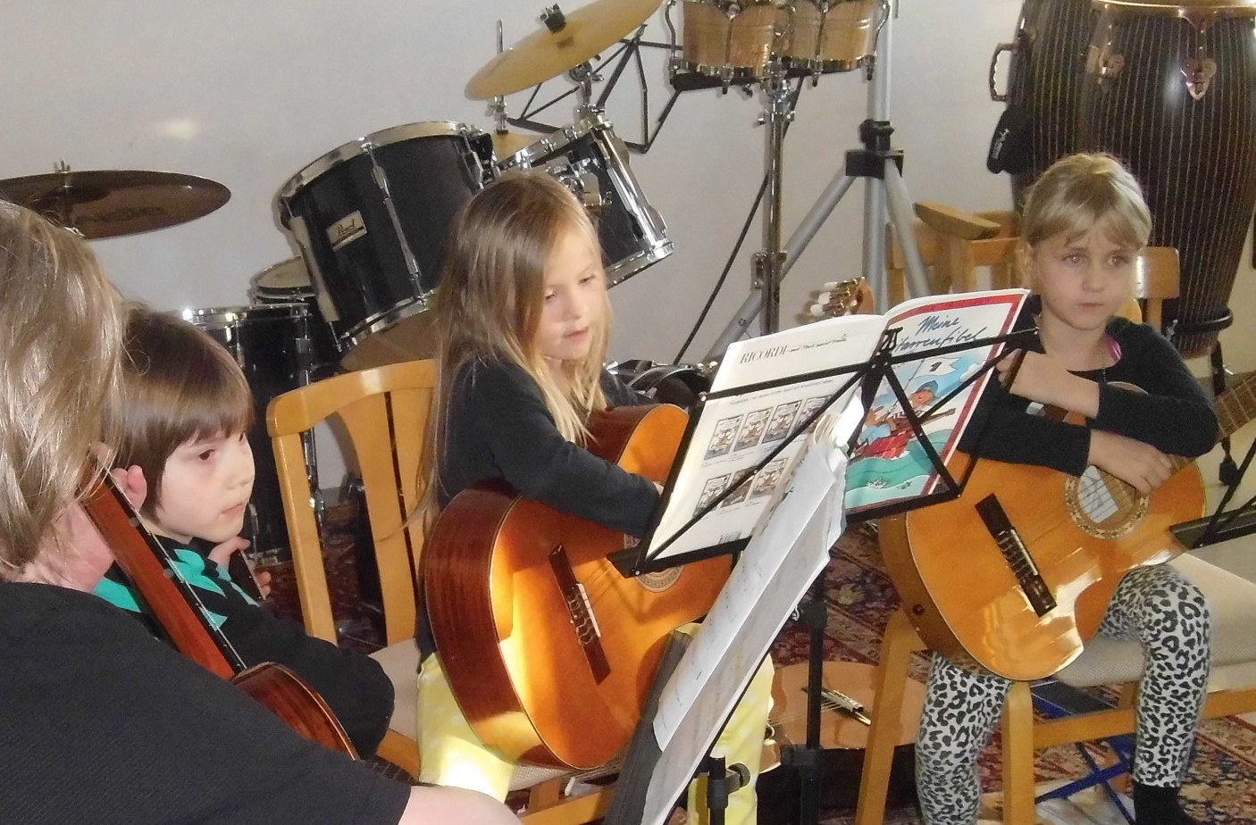 Mari­ella Käfer, Mar­tin Gut und Mar­tha Lodi-Hobel prä­sen­tie­ren ihre Schüler.