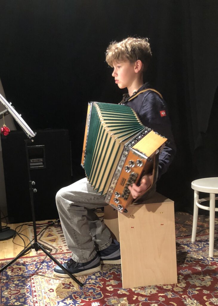 Bei der Seniorenweihnachtsfeier im Bühnenwirtshaus Juster war die Musikschule mit Lucia Hausleitner, Anna Leitner, Bernhard Wiesinger und Simone Haberzett sowie einem Lehrertrio vertreten.
